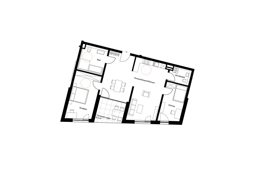 Hier ist keine Wohnung wie die andere: Jede der Mietwohnungen besticht durch ihre individuellen Grundrisse, die bewusst mit den Standards des klassischen Geschosswohnungsbaus brechen.