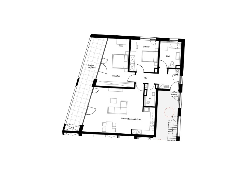 Hier ist keine Wohnung wie die andere: Jede der Mietwohnungen besticht durch ihre individuellen Grundrisse, die bewusst mit den Standards des klassischen Geschosswohnungsbaus brechen.